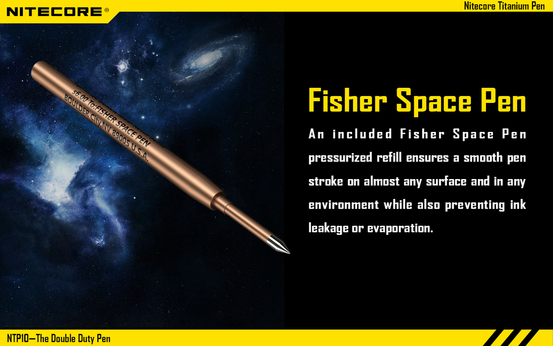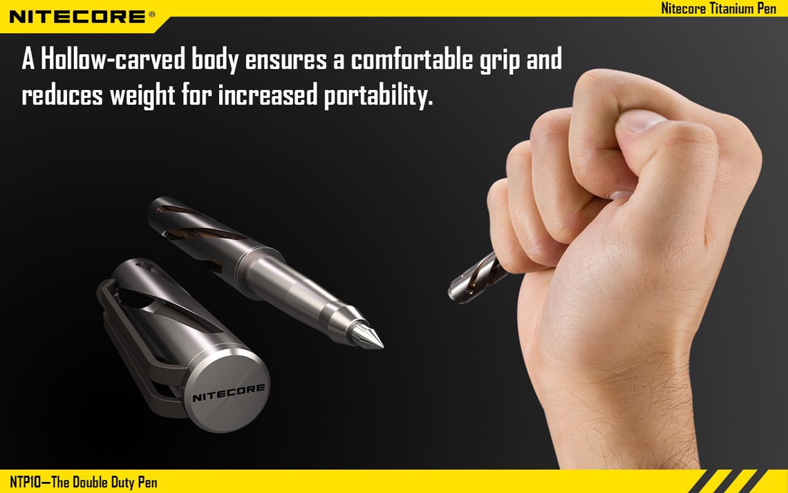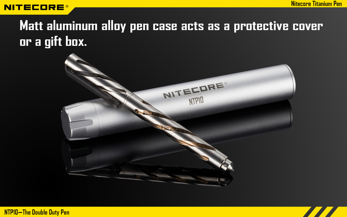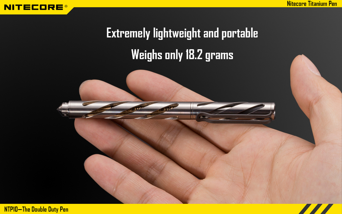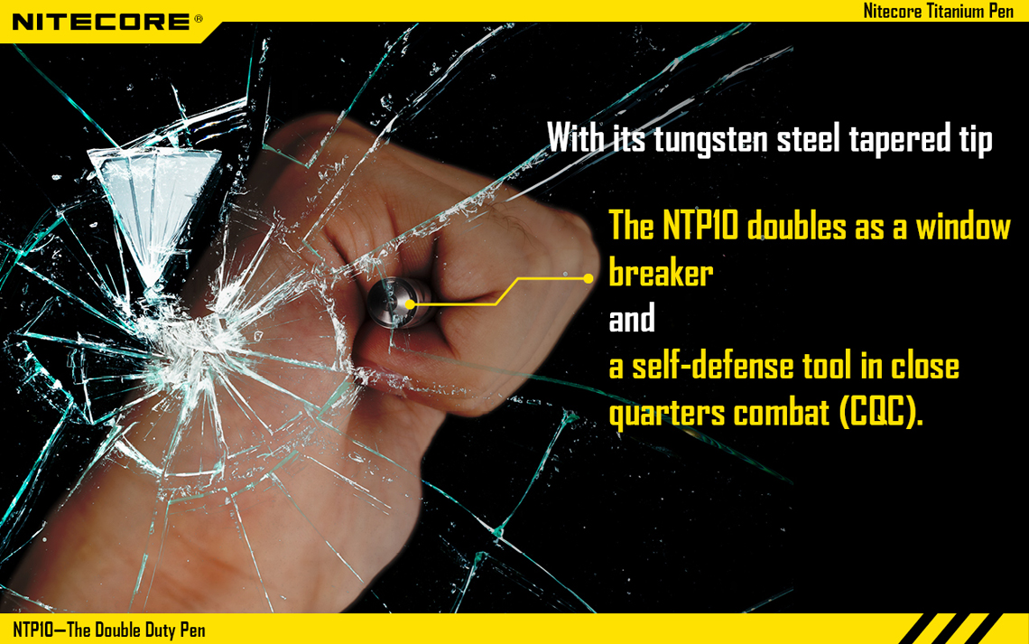 En el mismo esquema anterior, la marca NITECORE tiene una pluma discreta e indestructible que también funciona como herramienta para romper el vidrio y la Defensa Personal.