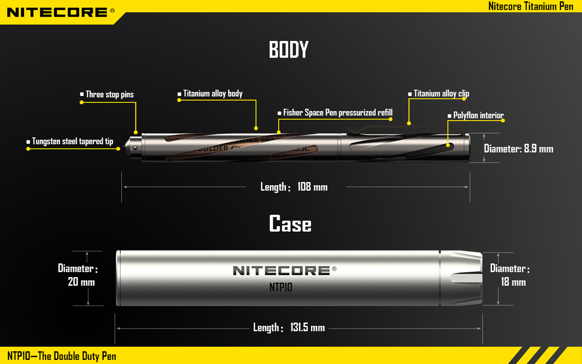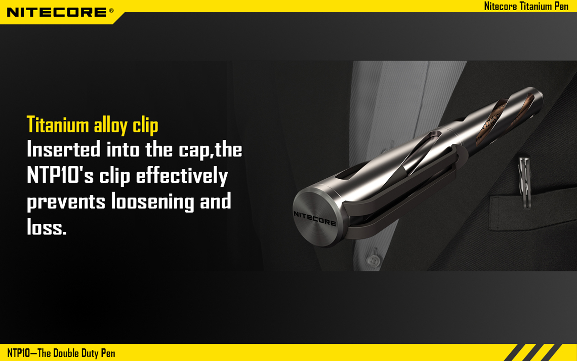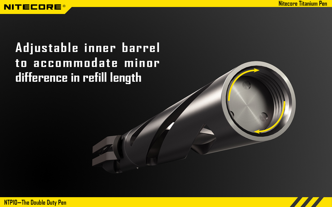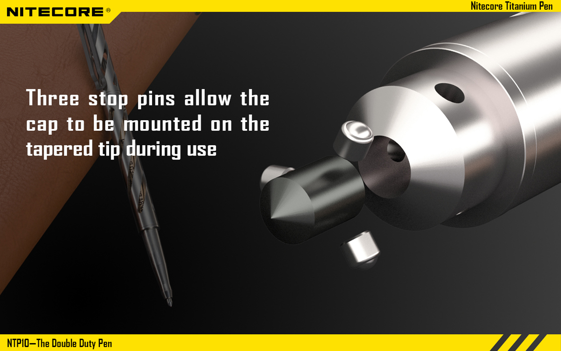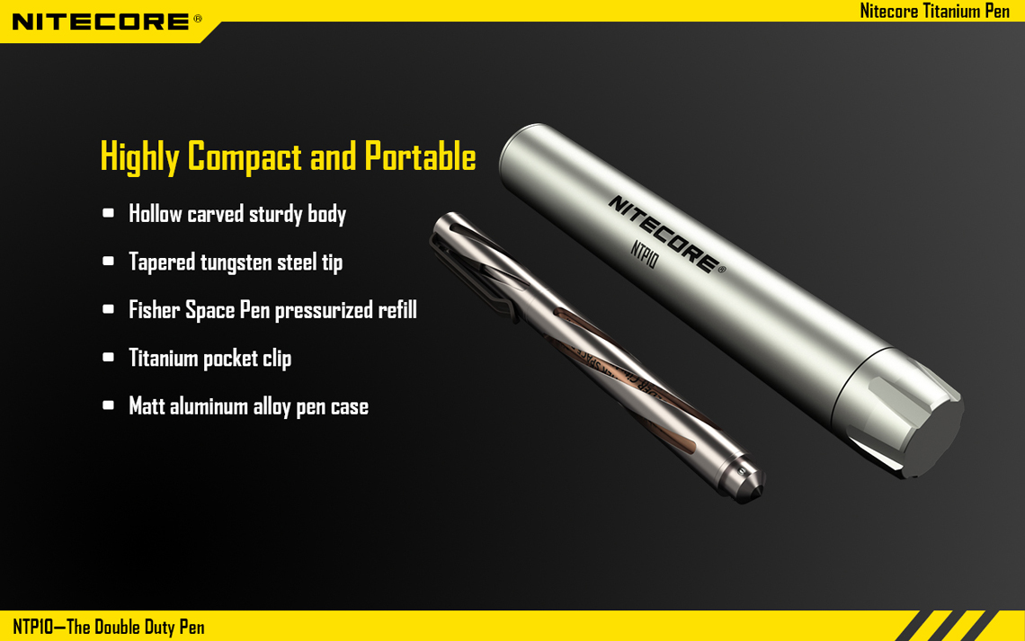 En el mismo esquema anterior, la marca NITECORE tiene una pluma discreta e indestructible que también funciona como herramienta para romper el vidrio y la Defensa Personal.